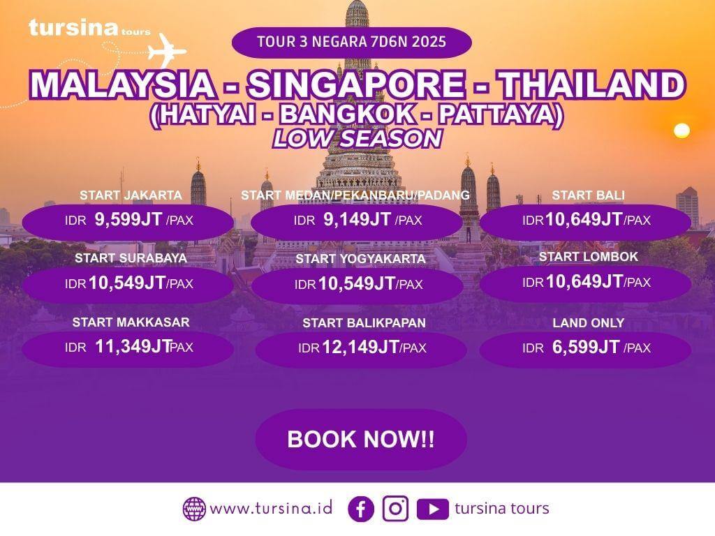 3 NEGARA 9D8N + BANGKOK - PATTAYA 2025
