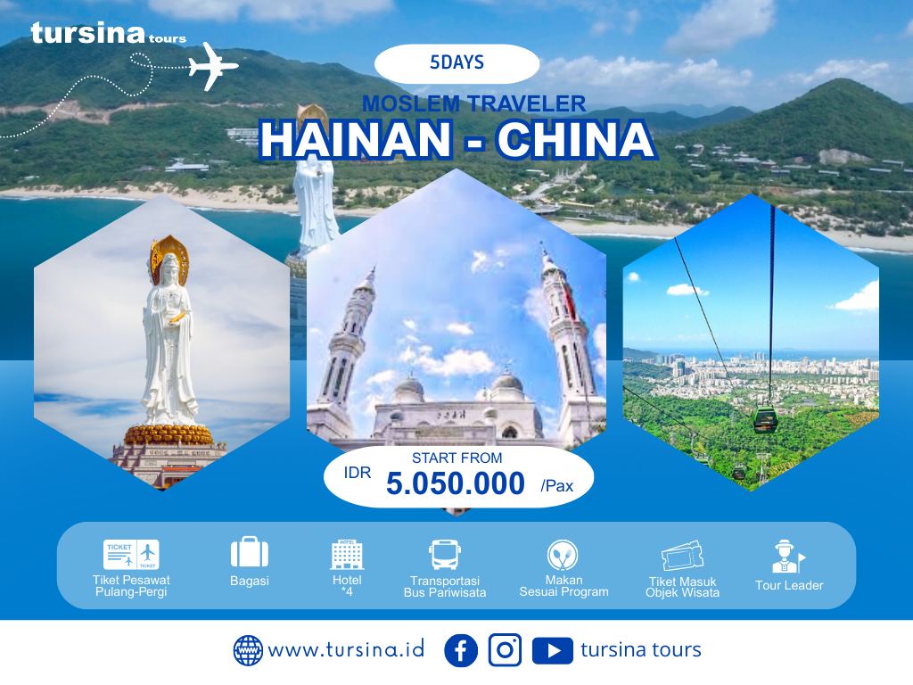 - Transportasi: Penerbangan pulang pergi dan pajak bandara untuk CGK/SYX/CGK, bus AC baru Hainan